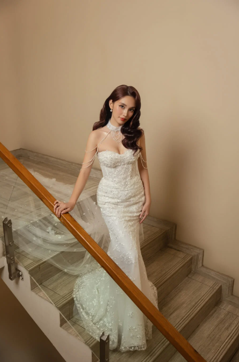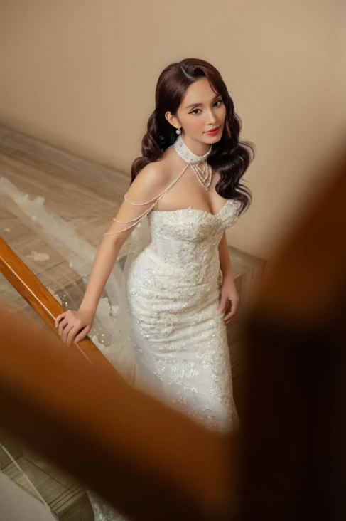 Chiếc váy cưới đuôi cá phong cách thanh lịch và quyến rũ. Thiết kế ôm sát cơ thể giúp tôn lên đường cong gợi cảm, với phần đuôi váy xòe nhẹ nhàng tạo nét mềm mại, uyển chuyển.